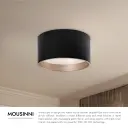 The Mousinni 14" flush mount combines modern aesthetics with practical functionality. Its two-tone design features matte black exterior with champagne gold interior, creating visual interest while the white acrylic diffuser provides even illumination.
