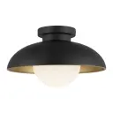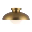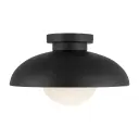 The Rubio flush mount blends mid-century aesthetics with contemporary flair through its distinctive half-shade design and opal glass globe. Perfect for spaces with lower ceilings, this 12-inch fixture delivers artistic style without sacrificing functionality.