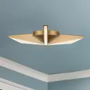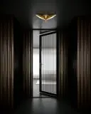 The Tachi flush mount combines geometric modern design with Japanese blade-inspired aesthetics. Features integrated LED with light guide technology and frosted acrylic diffuser for even illumination in contemporary spaces.