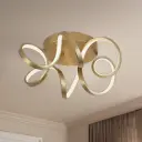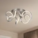 The Synergy flush mount features a distinctive looping aluminum extrusion with integrated LED technology. Its rolled rectangular design emits soft, warm light through a silicon opal lens, creating ambient illumination perfect for modern interiors.