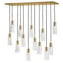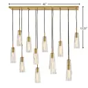 The Cosette linear chandelier makes a stunning statement with its elongated 46-inch silhouette and luxurious cut crystal elements. Heritage brass finish adds warmth while clear crystal creates rich, multi-faceted light patterns. Adjustable cords simplify installation and customization.