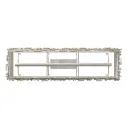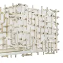 Farrah's contemporary design is bold and sculptural, while achieving an optical airiness. The hand-hammered crosshatch bars gleam in a hand-applied Si...