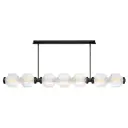 The Reign collection delivers sophisticated transitional style with seven ribbed glass shades arranged in a dramatic 69-inch linear form. Integrated LED lighting provides energy efficiency while the black finish adds bold contrast.
