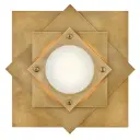 The Claude flush mount brings classic Art Deco sophistication with its stacked metal plates and Heritage Brass finish. The alabaster lens creates a warm, inviting glow while showcasing natural stone details through geometric layers.