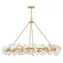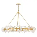 The Audra chandelier transforms spaces with its nature-inspired design featuring delicate ceramic ginkgo leaves on hand-forged branches. The hammered texture and hand-painted Deluxe Gold finish create an elevated, organic aesthetic perfect for sophisticated interiors.