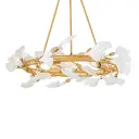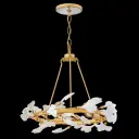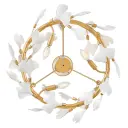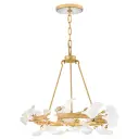 The Audra chandelier transforms spaces with hand-forged branches adorned with delicate ceramic ginkgo leaves. Its hammered texture and hand-painted Deluxe Gold finish create an elevated, nature-inspired focal point that balances organic beauty with refined sophistication.