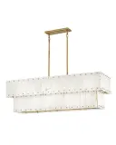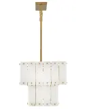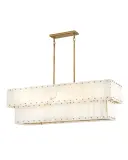 The Simone chandelier transforms grand spaces with its luxurious tiered alabaster design and burnished gold finish. Eight lights provide ample illumination while natural stone panels create warm, diffused ambiance perfect for formal dining and statement foyers.
