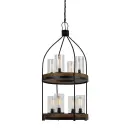 Industrial-Rustic 8-Light Chandelier with Metal and Wood Construction