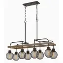 The Forio brings industrial charm with 8 mesh orb shades arranged in a linear configuration. Wood and iron finish blend rustic warmth with modern edge, perfect for farmhouse-industrial spaces. Edison bulbs sold separately for customizable vintage appeal.