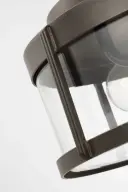 The Luning Medium Flush Mount combines a rounded metal frame with a cylindrical clear glass diffuser for a sleek, functional outdoor lighting solution. Wet-rated for all-weather durability and compact profile.