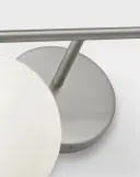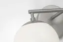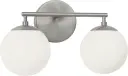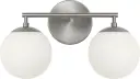 The Nube 2-Light Vanity brings contemporary elegance to bathroom lighting with its distinctive floating globe design. Milk glass spheres hover beneath a sleek horizontal bar, creating an airy silhouette while providing flattering illumination.