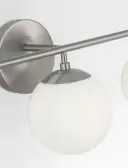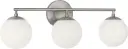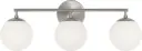 The Nube 3-Light Vanity brings sophisticated bathroom lighting with its distinctive floating milk glass spheres. The brushed nickel finish and horizontal bar design create an airy, modern aesthetic while providing flattering face-level illumination.