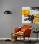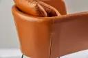 The Stanley Chair blends 70's bohemian charm with contemporary design through its distressed camel brown faux leather upholstery and sleek matte black metal frame. Generous seating dimensions and included accent pillow deliver comfort.