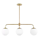 The Paige Linear Chandelier combines contemporary design with warm aged brass tones, creating a sophisticated focal point. Its linear form makes it perfect for dining tables and kitchen islands, while glass globes provide soft, ambient lighting.