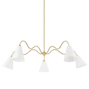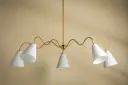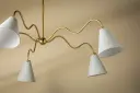 The Onda Chandelier brings artistic whimsy to modern spaces with its freehand doodle-inspired arms and pivoting white linen shades. Part of the Tali Roth x Mitzi collaboration, this 5-light fixture offers adjustable light direction and warm ambient glow, perfect for contemporary dining rooms and kitchen islands seeking personality with sophistication.