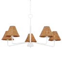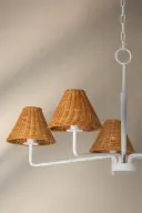 The Issa Chandelier brings organic warmth to contemporary spaces with its handwoven rattan shade and textured white finish. Slender hooked arms create visual interest while the natural material filters light beautifully, creating ambient glow perfect for casual dining and relaxed living areas.