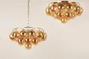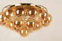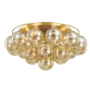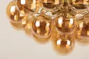 Swirl-ribbed or plated champagne glass globes dangle from an Aged Brass frame, creating this cloud-like showstopper. Whether you’re dressing up a brea...