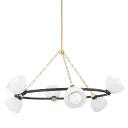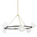 The Belle Chandelier delivers modern sophistication through its aged brass frame paired with glossy white globe shades. Exposed bulbs create a futuristic aesthetic while the clean lines maintain timeless appeal.