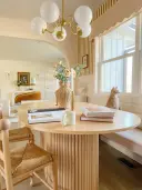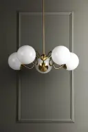 The Havana Chandelier brings playful sophistication with its wavy arms and glossy opal globes. This statement piece blends art nouveau curves with mid-century Italian flair, perfect for adding character to dining rooms and living spaces.