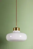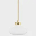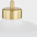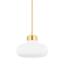 The Eliana Pendant combines mid-century modern charm with contemporary versatility. Its rounded opal glass shade provides soft, diffused light while the aged brass cap adds warmth and sophistication to any space.
