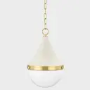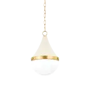 The Ciara Pendant beautifully balances nautical inspiration with contemporary design. Its teardrop silhouette, created by a conical metal shade and opal glass diffuser, offers soft illumination perfect for intimate spaces.