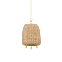 Textural and on trend, this tightly woven natural wicker pendant takes a simple basket weave form and makes it special. Aged Brass accents at the bott...