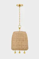 The Elena Pendant combines handwoven natural wicker with elegant Aged Brass accents for a sophisticated organic look. Its basket weave design adds warmth and texture while the metal detailing elevates it beyond basic natural materials.