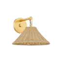 The Dalia Wall Sconce beautifully blends natural rattan wicker with refined aged brass metalwork, creating a sophisticated fixture that adds warmth and texture to any space. Its classic tapered shade silhouette is updated with contemporary materials.