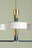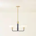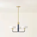 The Aston Chandelier combines architectural geometry with warm brass accents and distinctive slate blue glass shades. Part of the Zoe Feldman collection, this 5-light fixture delivers sophisticated modern style with a soft, inviting glow.