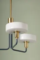 A modern statement piece in stylish Slate Blue, Aston features thick pillow-shaped shades made of Opal Shiny Glass balanced on a softly geometric fram...