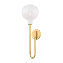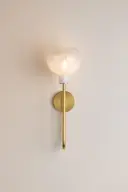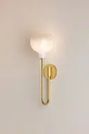The Estelle Wall Sconce beautifully bridges transitional and modern design with its graceful J-arm silhouette and distinctive Sfumato glass. The warm Aged Brass finish paired with naturally rounded cloudy glass creates an inviting, sophisticated lighting experience perfect for intimate spaces.