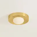 The Pepa Flush Mount delivers refined Art Deco styling in a compact, versatile package. Its aged brass canopy and soft opal glass shade create visual interest without overwhelming smaller spaces, making it ideal for low ceilings.
