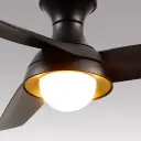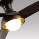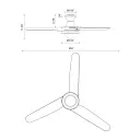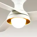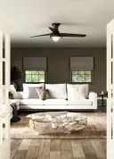 The Rubio-H combines mid-century charm with modern functionality in a 54-inch hugger design perfect for lower ceilings. Features oversized half-shades with opal matte glass globes and integrated 3000K LED lighting with remote control.