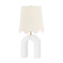 The Roshani Table Lamp combines artistic ceramic design with classic aged brass accents and a scalloped linen shade. Its unique magnet-inspired form creates visual interest while maintaining versatility across traditional and contemporary interiors.