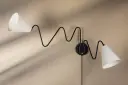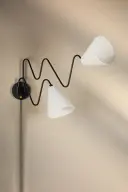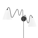 The Onda Plug-In Sconce brings artistic flair with its freehand doodle-inspired arms and pivoting white linen shades. Part of the Tali Roth x Mitzi collaboration, it offers flexible installation and warm, diffused lighting.