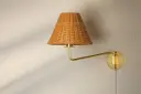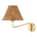 The Issa Plug-In Sconce brings organic warmth to any space with its handwoven rattan shade and aged brass finish. Perfect for renters or quick installations, this versatile fixture filters soft, ambient light while adding earthy texture.