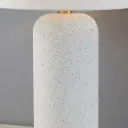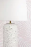 The Margaret Table Lamp showcases casual blue-grey terrazzo with Megan Molten's signature aesthetic, complemented by sophisticated Aged Brass accents. Perfect for adding welcoming ambiance to entryways or as coordinated pairs.