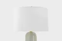 The Kel Table Lamp beautifully balances rustic texture with refined sophistication. Its reactive ash ceramic base features an organic, sandstorm-like pattern that brings natural character to any space, while the crisp white linen shade and aged brass neck add elegant contrast.