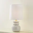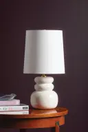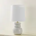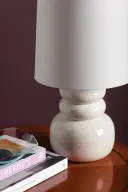 In a petite size, this playful, pillowy table lamp makes a charming statement with its stacked ceramic forms. The crackled nature of the finish and so...