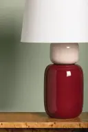 The Batya Table Lamp from the Zoe Feldman collection brings a fresh approach to minimalist lighting with its distinctive color-blocking technique. Soft Bordeaux and blush tones create visual interest while maintaining refined simplicity.