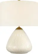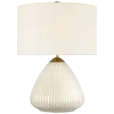 The Vesse table lamp brings organic modern elegance with its sculptural ceramic base in a warm cashew finish. At 28" tall, it provides substantial presence while the natural linen shade softens the light beautifully.