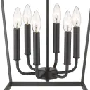 The Kennedy 6-Light Chandelier combines transitional elegance with industrial styling in a compact 16-inch frame. Its matte black steel construction and candelabra-style sockets create versatile ambiance for smaller dining spaces.