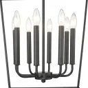 The Kennedy 8-Light Chandelier combines industrial styling with farmhouse appeal in a matte black finish. Its 20-inch width and 8 candelabra lights provide ample illumination for medium-sized spaces while maintaining visual balance.