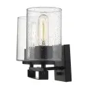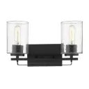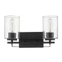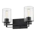The Orella 2-Light Sconce combines industrial styling with transitional versatility. Its matte black steel frame and clear seeded glass shades create visual interest while providing ample illumination for vanity applications.