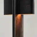 The Lotura floor lamp makes a bold statement with its dramatic 72-inch height and unique intersecting geometric form. The Museum Black finish provides sophisticated contrast in contemporary spaces.