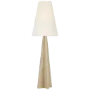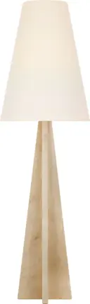 The Crue floor lamp combines natural maple wood with a soft linen shade, creating a warm, organic aesthetic. At 66" tall, it provides excellent ambient lighting while serving as a sculptural statement piece.