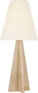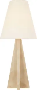The Crue table lamp showcases beautiful natural maple wood construction paired with a classic linen shade. At 34" tall, it makes a substantial statement while maintaining organic warmth and versatility across modern interiors.
