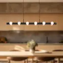 The Rezz 36-inch linear pendant reimagines classic Hollywood style with opal glass diffusers and a sleek matte black frame. Integrated LED with warm 3000K lighting creates inviting ambiance perfect for dining and kitchen spaces.