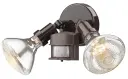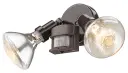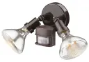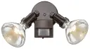 This dual-head floodlight combines practical motion detection with durable construction. The architectural bronze finish and polycarbonate shades provide weather resistance while delivering bright, energy-efficient illumination.
