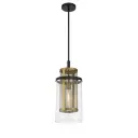 1 Light Mini Pendant in Coal and Soft Brass Finish with Soft Brass Wire Mesh and Clear Glass, a Robin Baron Design